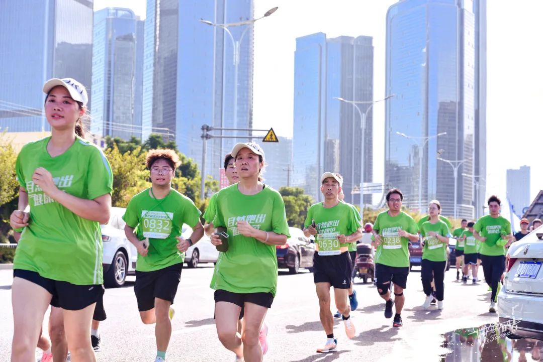 今天上午7点30分,伴随着响亮的鸣笛声,身穿靓丽荧光绿T恤的近千名跑友迈开步伐,开启了长达5.11公里的健康跑之旅。